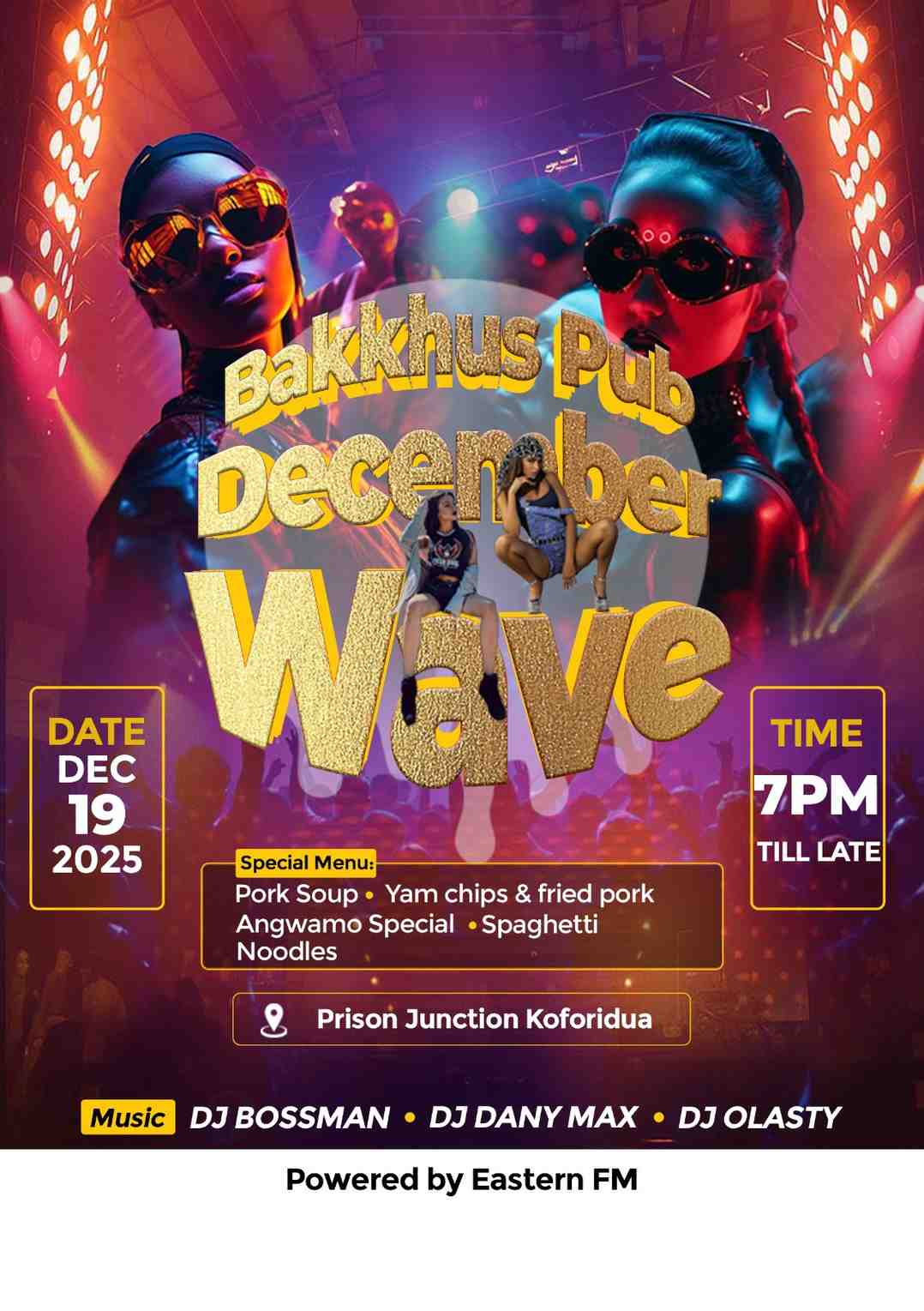 Koforidua, Ghana — The city is set to come alive tomorrow, Saturday 19th December 2025, as Bakkhus Pub officially ushers in the Christmas festivities with the much-anticipated Bakkhus December Wave at Prison Junction, Koforidua.